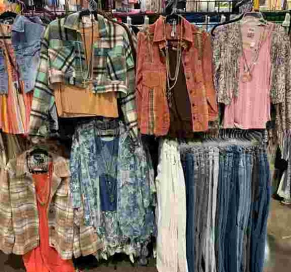 Hippy Gypsy Vintage Boho Western inspired ladies clothing. Lots of lace, fringe, crochet and ruffles. We have vests, sweaters, tops, jackets and Judy Blue jeans. And of course we have lots of bling! Great jewelry to match back with outfits. We are having lots of show specials! Racks and racks full of sow specialsProduct Images: